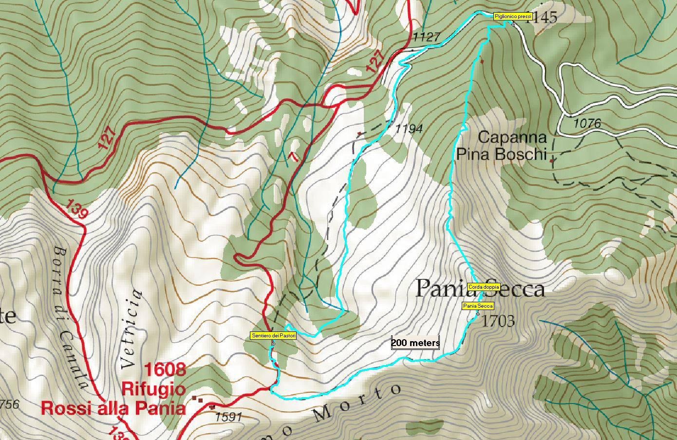 Nota: Percorso da effettuarsi con materiale e conoscenza di attrezzature alpinistiche, utile la traccia gps nella parte iniziale, escluso i mesi più caldi lo si può effettuare tutto l'anno incluso l'inverno.